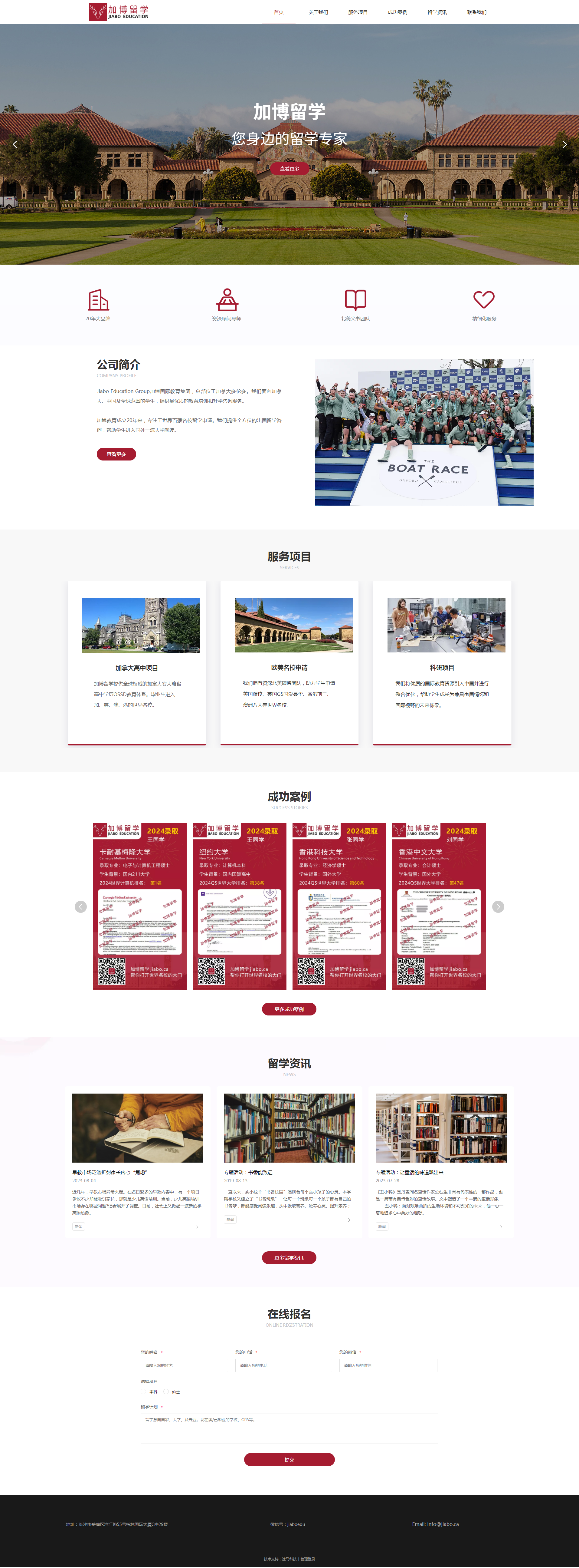 Jiabo Education Group加博国际教育集团,总部位于加拿大多伦多。我们面向加拿大、中国及全球范围的学生,提供最优质的教育培训和升学咨询服务。 加博教育成立20年来,专注于世界百强名校留学申请。我们提供全方位的出国留学咨询,帮助学生进入国外一流大学就读。